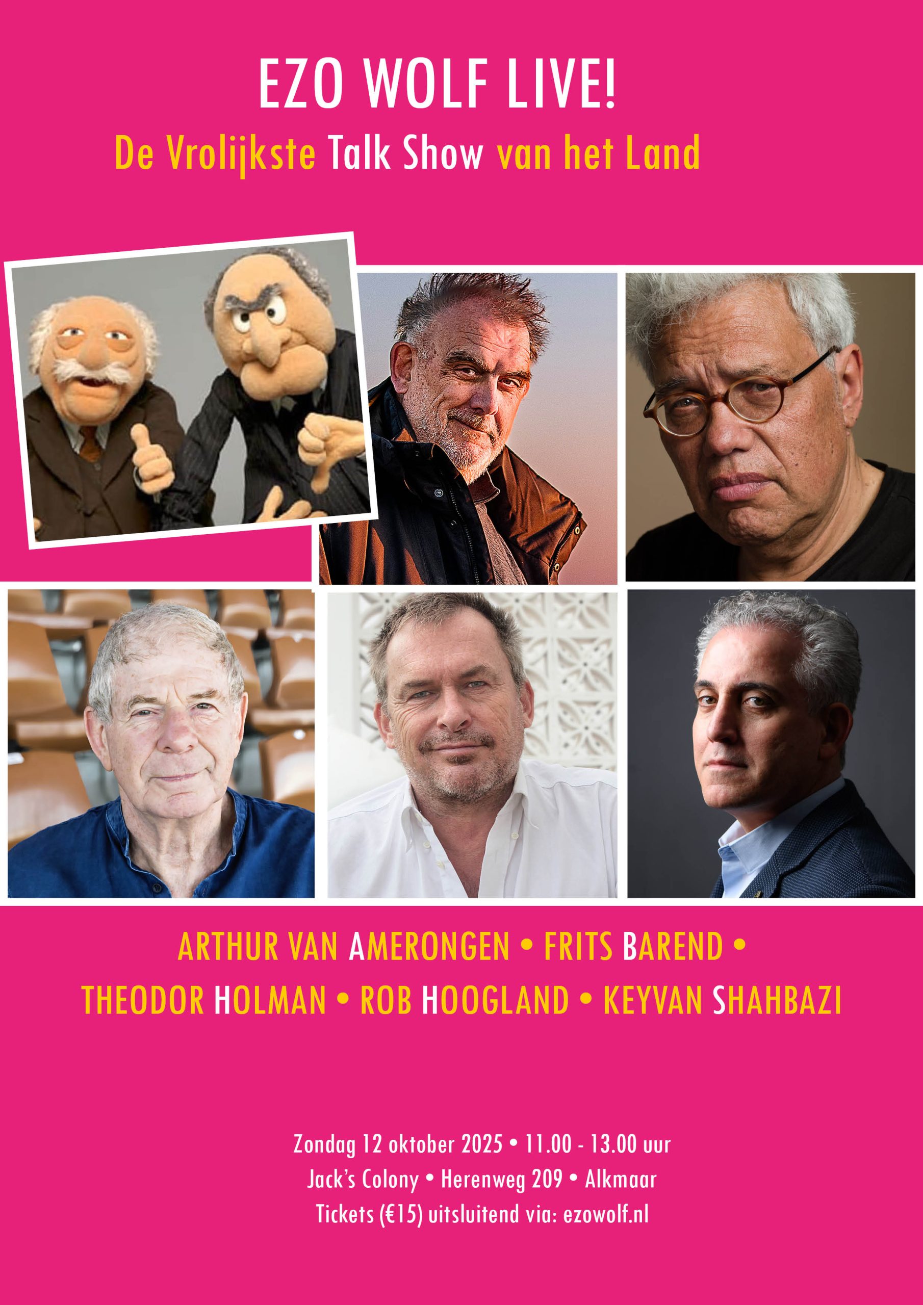 Zondag 12 oktober van 11.00 tot 13.00 uur met Arthur van Amerongen, Frits Barend, Theodor Holman, Rob Hoogland en Keyvan Shahbazi. In Alkmaar bij Jack’s Colony (Herenweg 209).